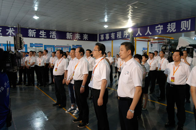 ? ? ? 本刊訊?7月30日上午,紹興市“曬亮點(diǎn)、比業(yè)績”考評(píng)活動(dòng)走進(jìn)諸暨。紹興市四套班子領(lǐng)導(dǎo)彭佳學(xué)、馬衛(wèi)光、譚志桂、魏偉、吳曉東等,同其他評(píng)委一起對(duì)我市10個(gè)項(xiàng)目和發(fā)展情況進(jìn)行實(shí)地考評(píng)。我市領(lǐng)導(dǎo)張曉強(qiáng)、王芬祥、姚漢松、郭浩良、孫君等參加??荚u(píng)組來到露笑新能源技術(shù)有限公司,對(duì)我公司實(shí)施“零土地技改項(xiàng)目”進(jìn)行考評(píng)。